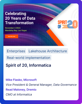 Watch the sessions on-demand that include topics such as Data Mesh, Iceberg, and Data Lakehouse Architecture best practices.
